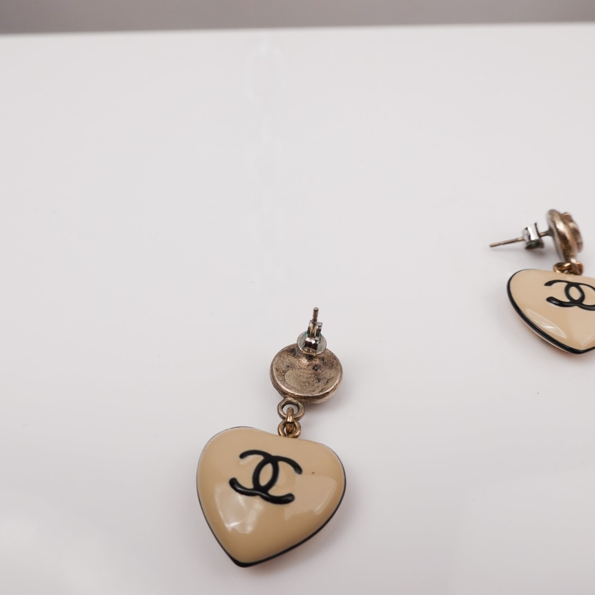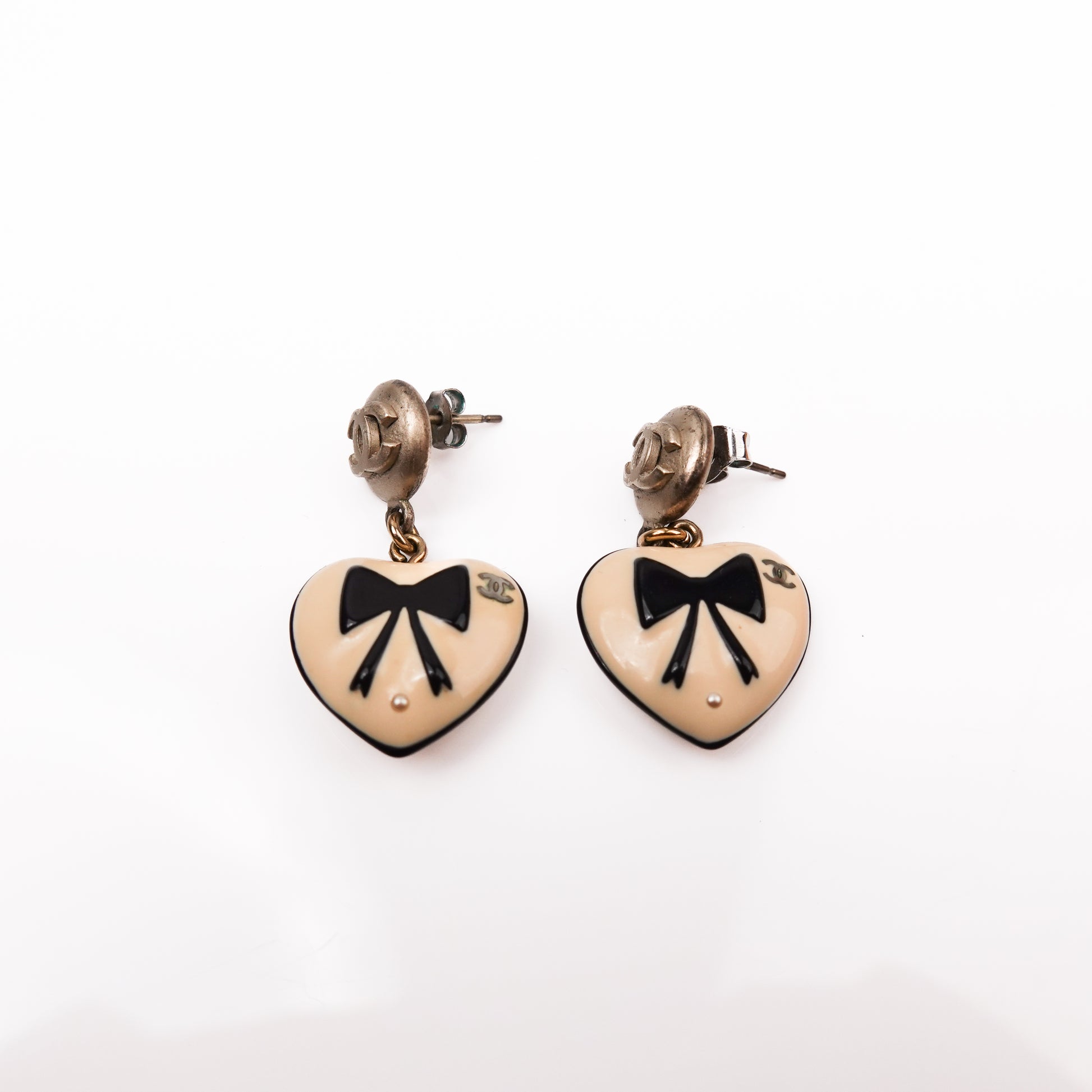 Chanel Pearl CC Heart Drop Earrings