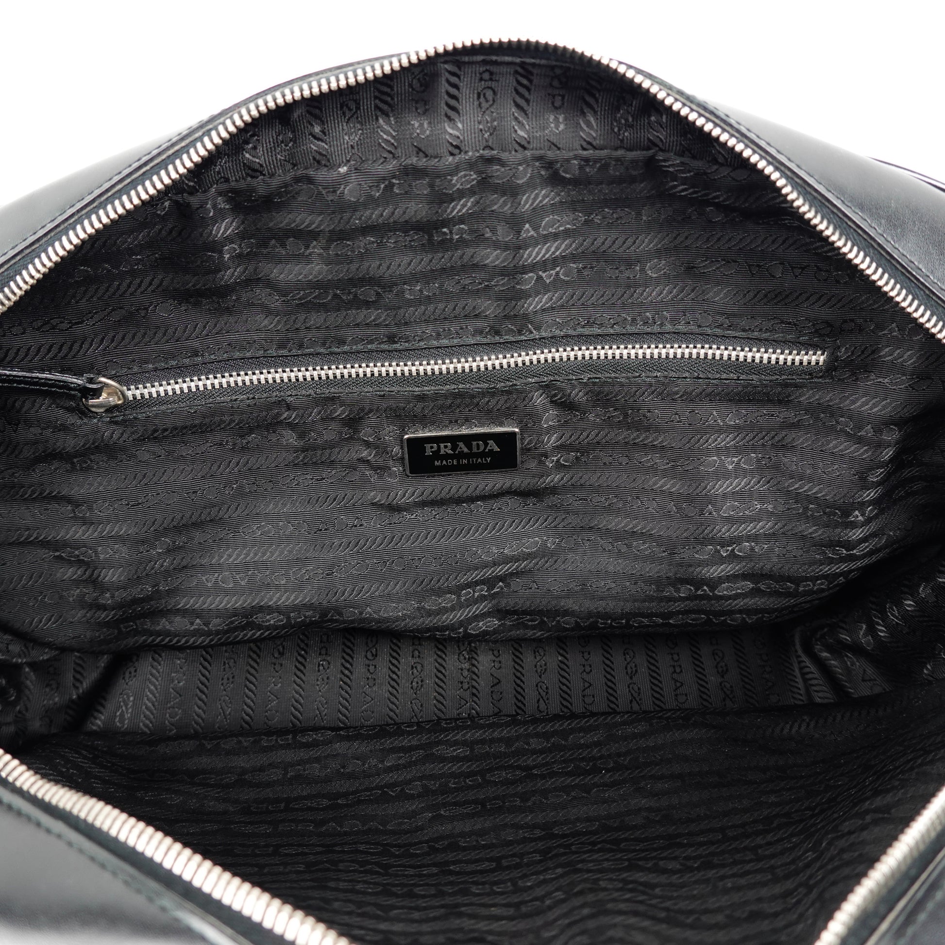 Prada Black Nylon Leather Bauletto Bag