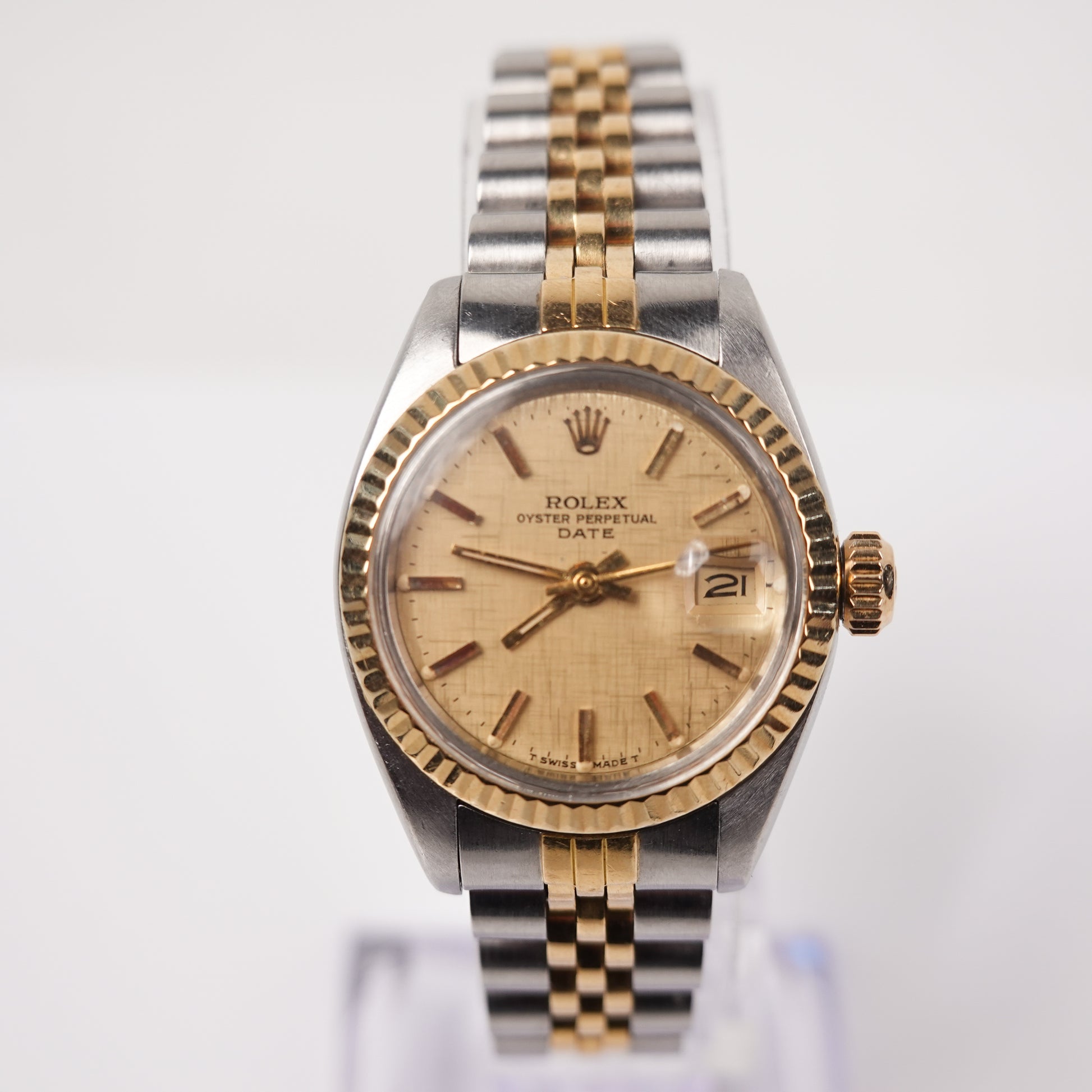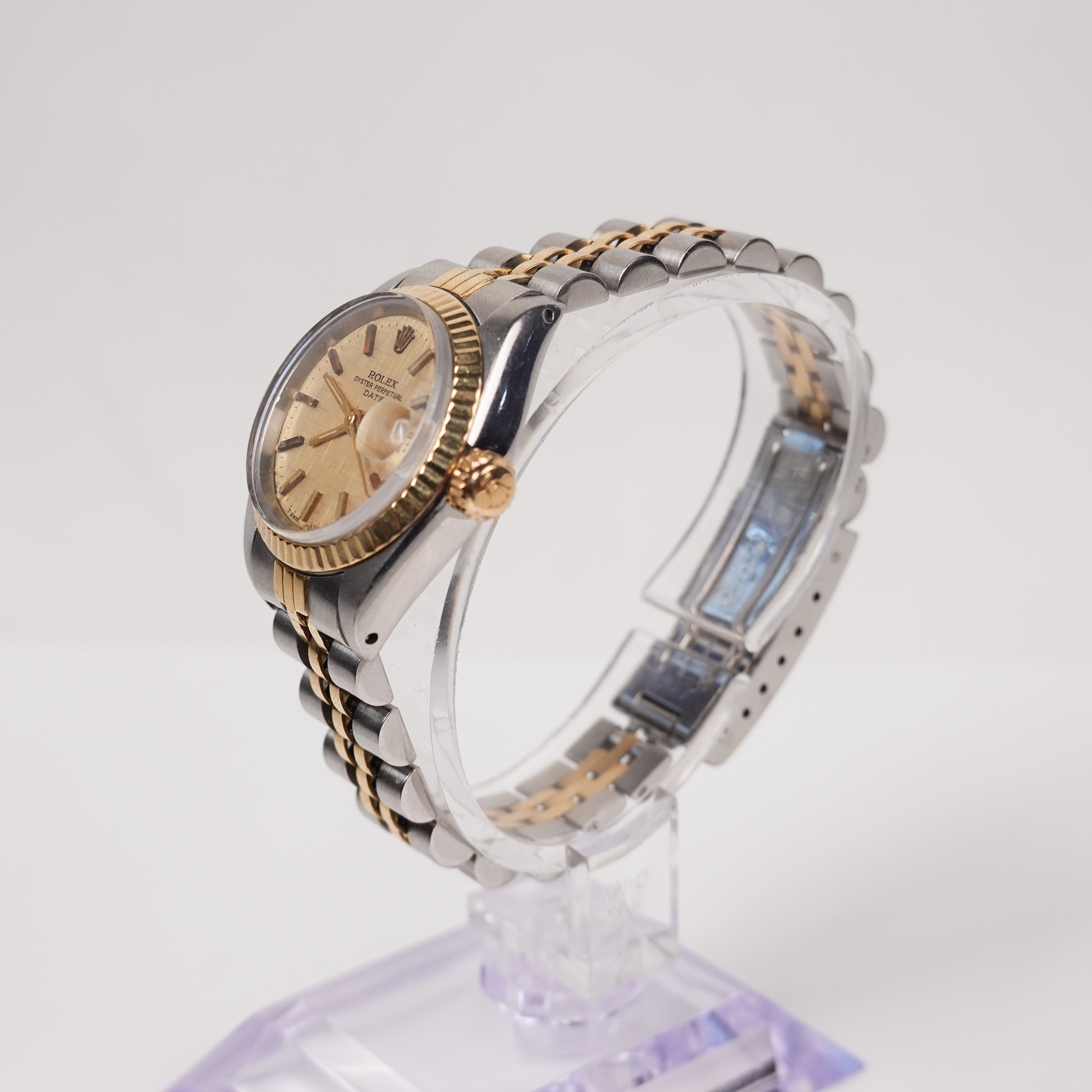 A classic Rolex ladies’ wristwatch from the 1970s, the Ref. 6917 is a two-tone (yellow gold & stainless steel) Oyster Perpetual Date model designed for everyday wear. This vintage piece blends refined style with Rolex’s hallmark durability and precision.